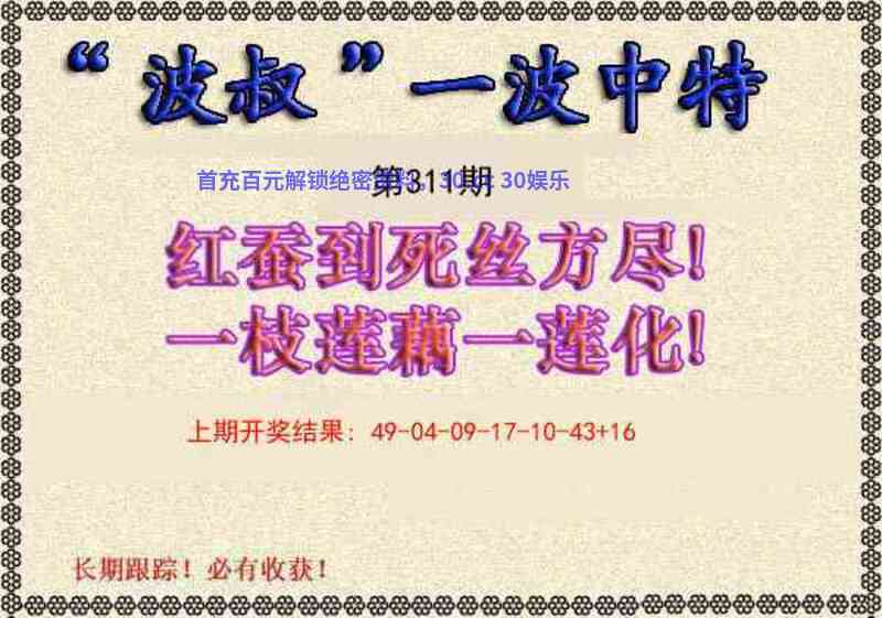 | 311期【澳彩36码】中特=开:蛇37准 |