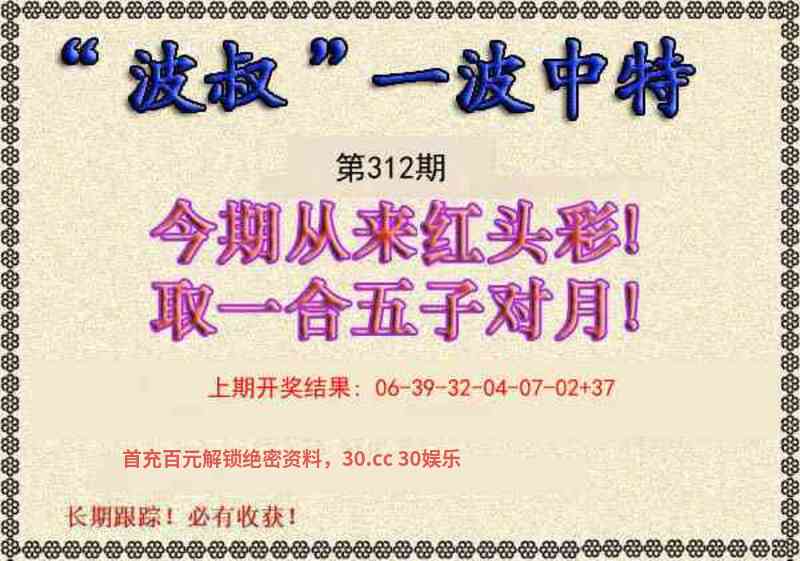 | 312期🍇三行中特🍇【木火水】开:龙14准 |